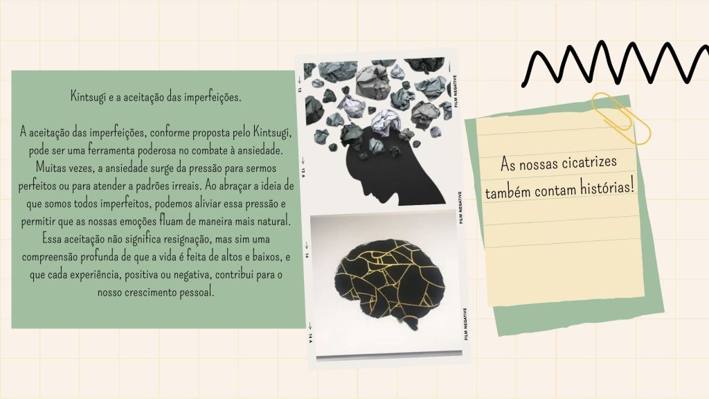 Tal como no Kintsugi, cuidar da saúde mental não significa apagar/esquecer as fragilidades e problemas, mas aprender a reconhecê-los, aceitá-los e transformá-los em partes importantes da nossa história. Ao integrar esta perspetiva no ambiente escolar, incentivamos toda a comunidade educativa a compreender que as vulnerabilidades fazem parte da vida e que muitas vezes podem ser promotoras do desenvolvimento de competências essenciais como a aceitação, a resiliência, o respeito e a empatia.